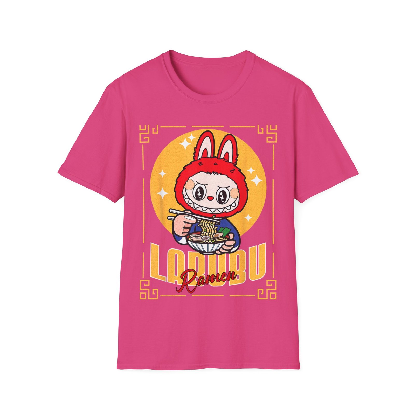 Introducing our Unisex Softstyle T-Shirt – where cozy comfort meets playful charm. Whether you’re a ramen lover, a Labubu fan, or just someone who enjoys adding a little joy to everyday life, this tee is made for you. With its soft touch and light-hearted design, it’s perfect for cozy hangouts, weekend adventures, or just chilling with your favorite bowl of noodles.